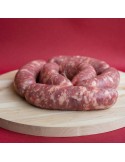 Ottenuta attraverso il taglio a cubetti di pregiati tagli di carne suina come spalla, pancetta, coscia e lardo, questa salsiccia si distingue per la sua caratteristica unica: i pezzi non vengono macinati, ma tagliati manualmente con maestria utilizzando un coltello.